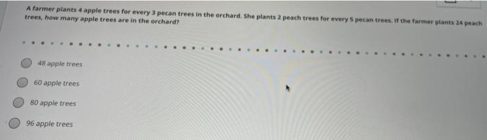 A farmer plants 4 apple trees for every 3 Pecan trees in the orchard. Number of apple treesNumber of peach treesNumber of pecan treesNumber of apple treesNumber of peach treesNumber of pecan trees. A farmer plants 4 apple trees for every 3 pecan trees in the orchard.
